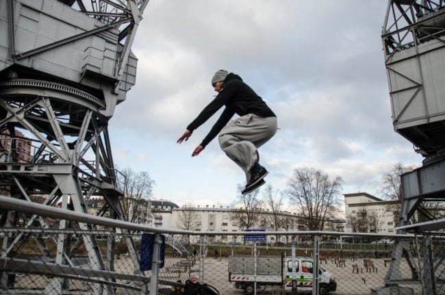 Sous un ciel couvert, les bourrasques glaciales s’engouffrent entre les rues de Strasbourg et balaient la surface de l’eau près du centre commercial Rivétoile. Au dessus du bassin Malraux, Jihane Dehbi, jogging large et sweat à capuche, joue les funambules sur la rambarde. Après un instant de concentration, il bondit sans élan d’un bord à l’autre du pont dans un saut de précision de quasiment trois mètres. Simple entraînement de routine, malgré l’air surpris de quelques spectateurs.