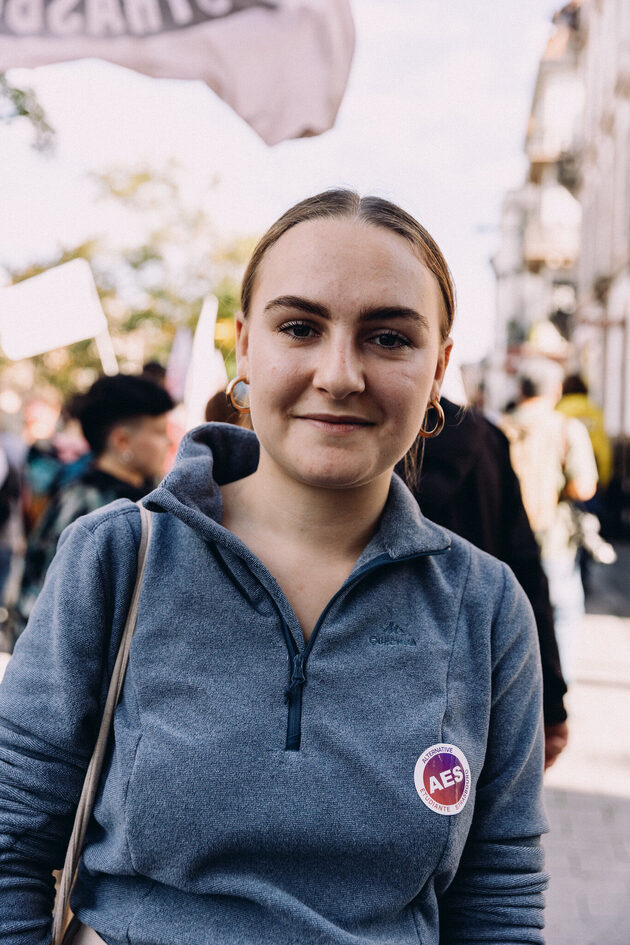 Les organisations de jeunes Fidl, MNL, Unef et la Vie lycéenne prennent aussi part à la mobilisation et sont positionnées en tête de cortège. Des militants allument des fumigènes noirs et rouges. Margo, en deuxième année à Sciences Po Strasbourg, explique qu’elle a choisi de venir aujourd’hui car la mobilisation prend de l’ampleur :