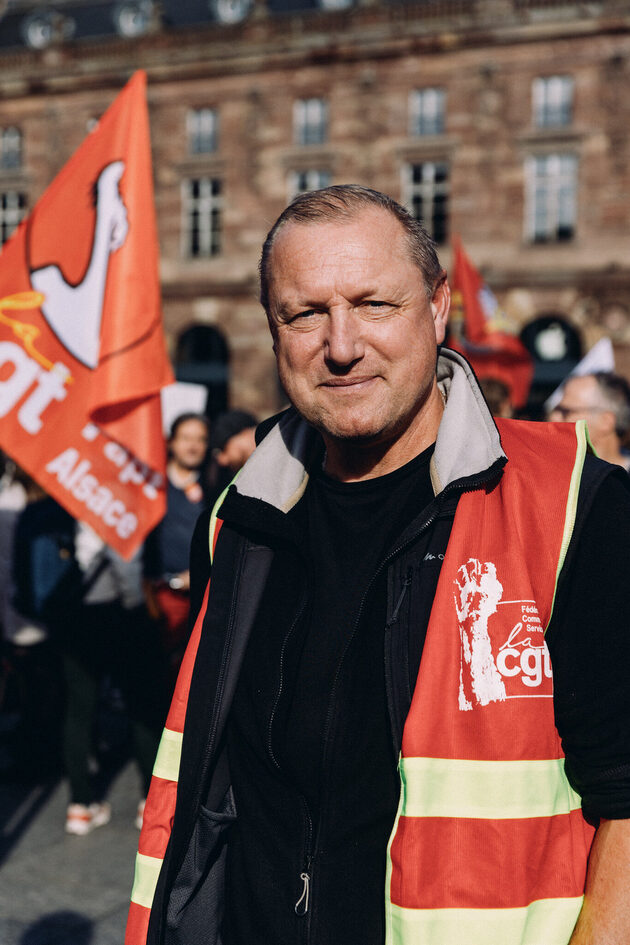 Les représentants syndicaux sont satisfaits de l’affluence du jour, mais beaucoup reconnaissent aussi qu’il est difficile de convaincre massivement leurs collègues. Francis, de la CGT Auchan Neudorf, a tracté sur son lieu de travail samedi. « Les autres soutiennent, ils nous tapent dans le dos et nous disent que c’est bien, mais ils ne sont pas là aujourd’hui », note t-il. Après 32 ans de carrière, il gagne 1 500 euros net par mois en s’occupant du rayon poisson :