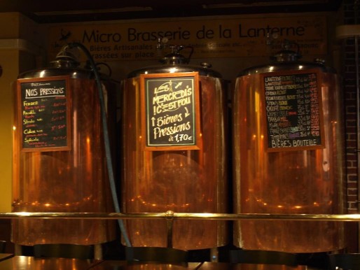 Les grosses cuves présentes à l’intérieur de la micro-brasserie La Lanterne ne laissent pas de place au doute : ici, les bières sont brassées directement sur place, chaque matin. Le bar a trois sortes de pressions artisanales : la Fender blonde (2,50€) la Strato Ambrée (2,60€) et la Blanche Anaëlle (2,70€). En happy hour, les pressions passent à 1,70€ pour un demi et 3,40€ euros pour la pinte. Des bières en bouteilles sont aussi proposées, comme la Triple Karmeliet, la Chouffe ou la Barbar. Familles, étudiants ou touristes constituent la clientèle principale de ce bar, qui comporte aussi une salle fumeurs.