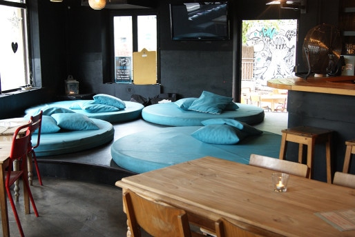 Au coin du quai Charles-Altorffer, en face de l’ENA, les étudiants peuvent venir se prélasser dans les coussins du café L’Abattoir ou dans l’arrière-cour aux murs tagués. Un cadre boisé et cosy qui plaît, puisque l’établissement enregistre parfois des réservations de 120 personnes. Ici, la pression la moins chère c’est la Pils, une blonde basique à 2,80€ le demi et 5€ la pinte. Quant à la plus chère, c’est le Picon qui monte à 3,30€ le verre de 25 centilitres. La carte présente également un petit panel de bières en bouteilles : Heineken, Desperados… toutes sont à 5€.