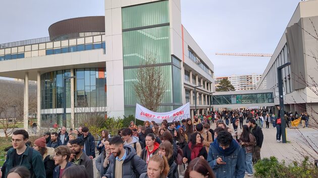 Durant les prises de paroles, un autre militant plaide devant la foule qu’il faut « s’arracher de l’illusion qu’on peut obtenir quelque chose de notre gouvernement ». S’ensuivent quelques interventions, du même acabit, avant que les participants au rassemblement ne décident de manifester sur le campus.