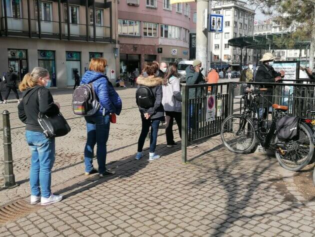 Depuis octobre 2020, la fermeture des bars et des restaurants a allongé les files d’attente devant les toilettes publiques du centre-ville de Strasbourg. Amandine et Laeticia, venues pour faire les magasins, partagent aussi ce constat : « Comme les toilettes des centres commerciaux et des restaurants sont fermées, nous avons cherché des toilettes publiques dans le centre-ville pendant plusieurs heures. »