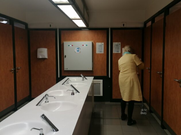 « Trois fois par jour, on devait fermer les toilettes publiques durant 30 minutes pour les désinfecter complètement. Les toilettes étaient donc fermées de 10h à 10h30, de 12h à 13h et de 16h à 16h30. Les gens se sont plaints car le temps d’attente était trop long. On a donc décidé d’arrêter ce protocole sanitaire. Maintenant les agents d’entretien désinfectent les toilettes tout au long de la journée. »