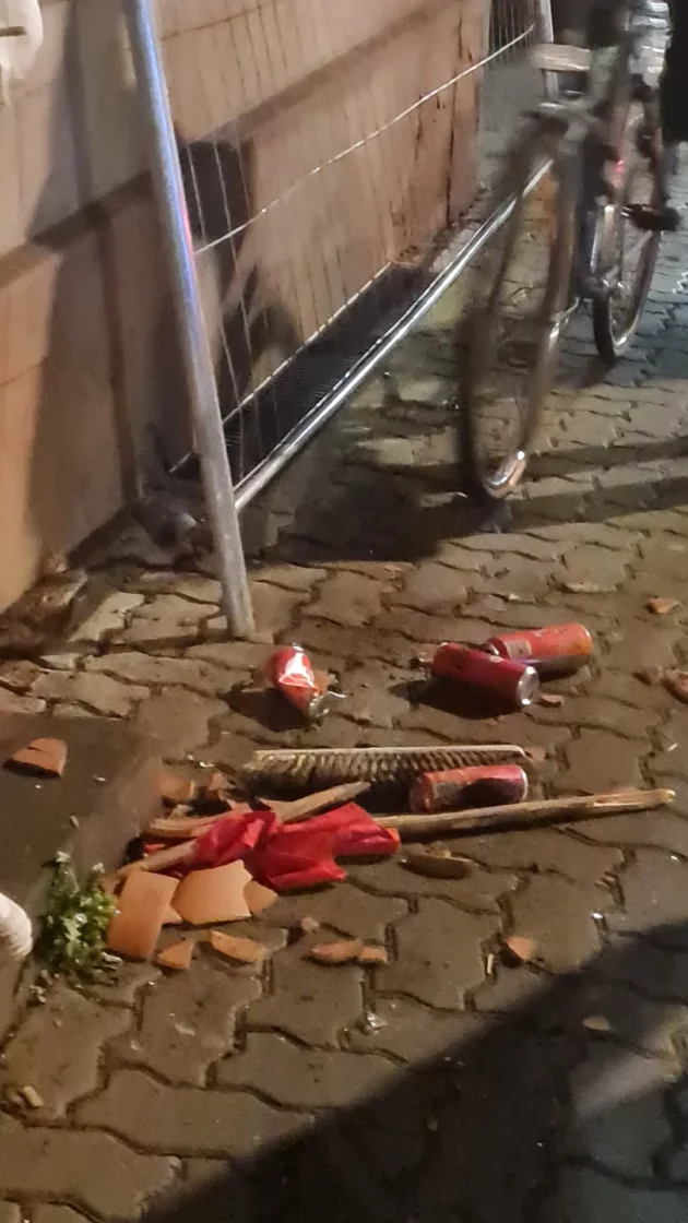 Vers 22h40, au moins cinq véhicules de la police nationale étaient sur place. Des débris de projectiles jonchaient encore le sol. Une barrière de chantier était en équilibre sur des vélos en face de la porte de l’immeuble. Selon nos informations, aucune arrestation n’a eu lieu sur place. « Les fachos ont pu partir tranquillement », s’insurgent plusieurs participants à la table ronde. Fin novembre 2021, Rue89 Strasbourg publiait un article sur l’impunité des néonazis de Strasbourg Offender, qui ont pourtant déjà revendiqué plusieurs attaques violentes.