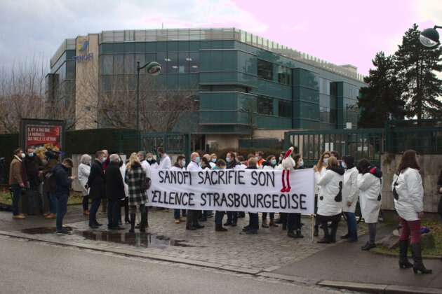 Environ 35 des 54 salariés de Sanofi à Strasbourg ont manifesté jeudi 28 janvier devant le portail du laboratoire. Cette action coïncidait avec le très attendu Comité social et économique (CSE) au siège de l’entreprise. Cette réunion lançait un nouveau plan d’économies : suppression de 1 000 emplois en France, dont 364 dans la recherche et donc le transfert des équipes de Strasbourg vers les locaux de Vitry-sur-Seine (Seine-et-Marne).