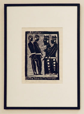 La relève est notamment représentée par Petrus Amuthenu, né en 1981. La linogravure Land Issues (2015) affirme un style à la fois symboliste et urbain : un brasier de poings fermés levés dans lequel une imposante main soulève une parcelle de terre saturée de buildings. On est frappé par l’ardente intensité de l’image, par ce poing levé vers l’émancipation namibienne. Salinde Willen, née en 1987, préfère quant à elle, l’impression sur carton. Silhouette noire et casque à lampe frontale : avec The Miner (2015) l’artiste s’engouffre dans une mine aux parois d’or représentée avec minutie et détails. De la sorte, elle donne vie à des scènes du monde rural pour narrer les mœurs traditionnelles qui persistent dans la Namibie d’aujourd’hui. Comme le révèle l’exposition, la linogravure est un médium largement exploité par la scène namibienne, qui se l’approprie pour représenter des sujets sociétaux contemporains.