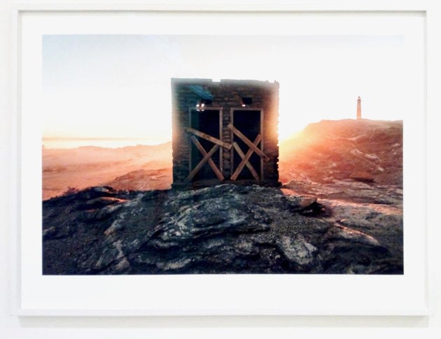 Un pan de mur sur le littoral avec deux portes barricadées. Un pont de bois vétuste menant à l’ancienne île aux esclaves. Une femme vue de dos, vêtue de la robe traditionnelle du peuple Herero, immobile dans un paysage désertique face à une église en bois. D’une grande qualité picturale, avec une grande richesse de détails, cette série photographique mélancolique de Nicola Brandt semble éclairer les non-dits de l’histoire namibienne.