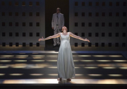 A Thèbes, Antigone refuse le déshonneur que son oncle Créon, tyran de son état, souhaite infliger au défunt frère de cette dernière, Polynice. Frêle fille faisant face à l’autorité toute puissante de son oncle, elle est la voix déterminée et la colère inébranlable des justes et des dignes. Par un simple jeu de couleur porté aux costumes, la mise en scène d’Adel Hakim sait nous rappeler ce qui se trame dans cette tragédie grecque. Vêtus de noir ou de blanc, les personnages de Sophocle laissent clairement entendre que certains sujets ne sauraient se parer de nuances sans signifier la soumission.