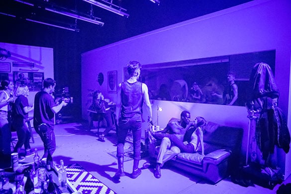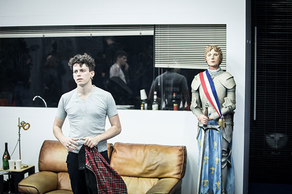 Le travail sur le corps passe par un double mouvement entre la scène et l’écran qui projette des images captées sur scène à la caméra. Mais cette célébration de la mixité européenne laisse place à la violence et au nationalisme. Ainsi différents symboles repris par les mouvances d’extrême droite apparaissent: une statue de Jeanne d’Arc trône dans l’appartement, un des jeunes porte au torse le tatouage de la croix celtique, reprise par des groupes comme le GUD. A l’idéal d’une Europe ouverte, évoquée dans la première partie, répond une seconde dans laquelle on constate le repli sur soi de la génération Erasmus.
