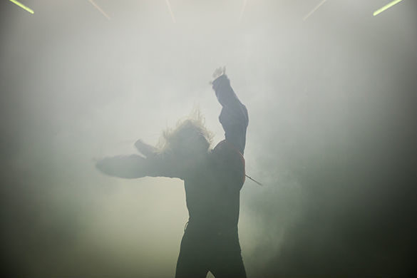 Le spectacle se construit en deux parties sur fond d’Eurodance. La première comprend une scénographie en forme de vortex stroboscopique rappelant les tunnels évoqués plus haut, où les acteurs scandent le texte écrit par Aurélien Bellanger. S’y oppose une seconde partie plus incarnée qui se déroule dans un appartement, quelque part en Europe. Au cours d’une fête, se croisent différentes nationalités européennes.