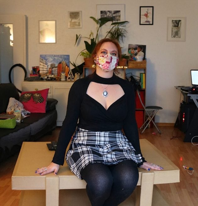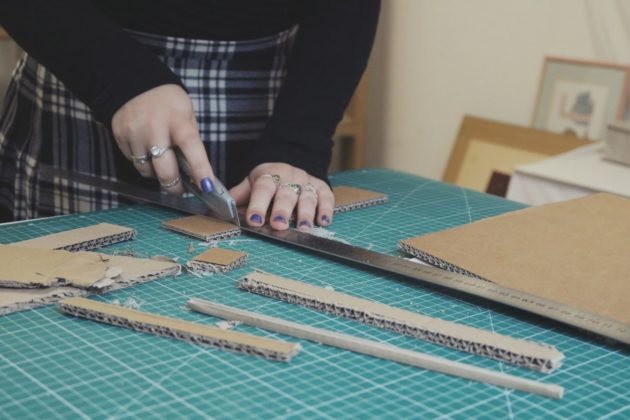 Au milieu de ses créations, la jeune femme habillée de noir et d’une jupe à carreaux semble connaître sa matière sur le bout des doigts. Pourtant, elle a découvert le monde merveilleux du carton un peu par hasard, il y a 8 ans.