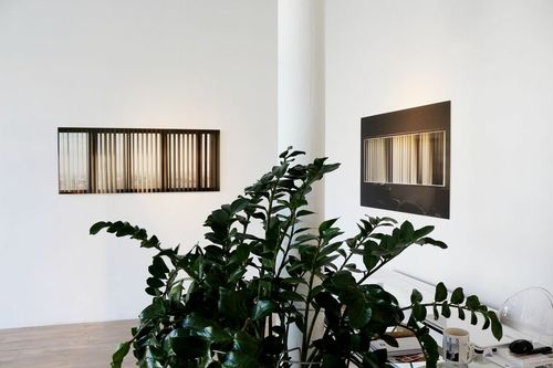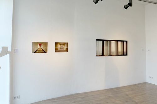 Au Frac, au printemps dernier, il avait présenté une photographie d’un avion qui semblait s’être crashé mais il s’agissait en fait d’un décor de cinéma. À la galerie Radial, Bertrand nous invite à la frontière et se joue de nos impressions nous illusionnant sur ce qui nous est donné à voir. Au théâtre, ou du moins dans le théâtre classique, le rideau s’ouvre et on peut alors voir la pièce se jouer devant nos yeux. Dans les photographies de Bertrand Gondouin, le motif du rideau est récurrent mais il s’agit là de la version post années 1970 : des lamelles verticales qui masquent la vue et empêchent de voir au-delà ou du moins de reconnaître se qui se trouve en arrière-plan.