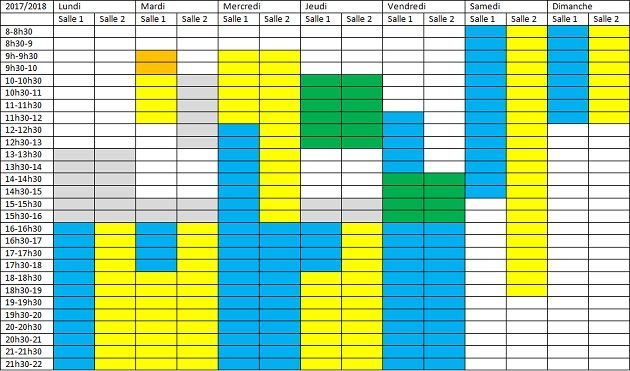 Le seul document sur lequel il est possible de s’appuyer est le planning des créneaux d’entraînements de 2017, encore valable aujourd’hui.