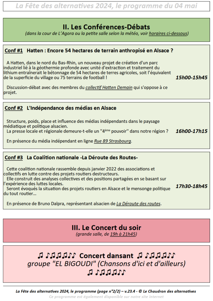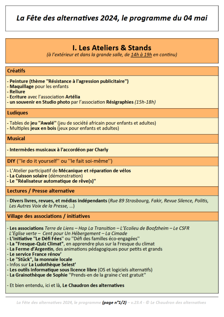 De 14h à 22h, samedi 4 mai, le Chaudron des alternatives organise sa troisième fête des alternatives au foyer Notre Dame de la Paix, à Sélestat. L’occasion de se rencontrer, d’apprendre et de discuter.
