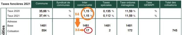 C’est sur cette base locative que s’appliquent ensuite les taux d’impôts locaux. Il existe 5 type d’impôts, qui se cumulent :