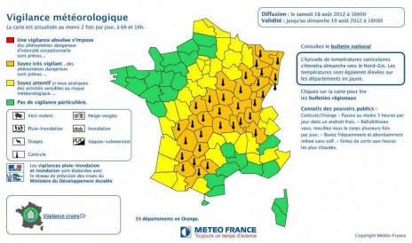 Météo France prévoit l’apogée des très fortes chaleurs durant la journée de dimanche 19 août :