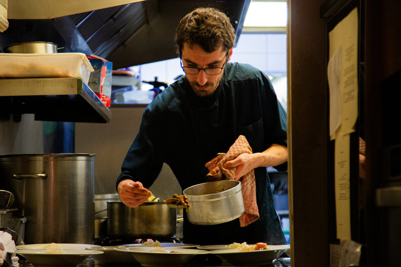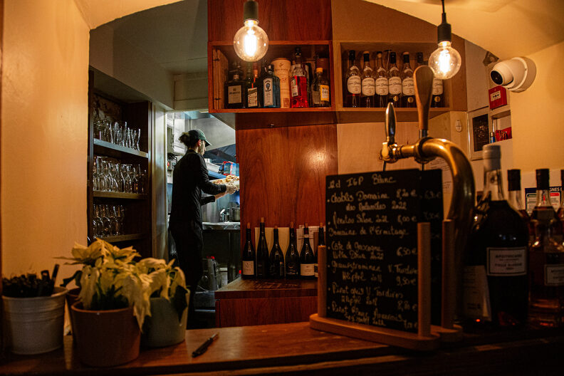 « On a une capacité maximale limitée, donc les samedis on espère que les clients jouent le jeu de ne pas rester à table plus de deux heures… Mais on accepte toujours les réservations, avec une empreinte bancaire. Quant à la carte, elle change régulièrement donc pour le mois de décembre, on propose une carte de Noël, qui ne va pas forcément plus vite mais avec des épices et de la choucroute, qui reste très demandée. »