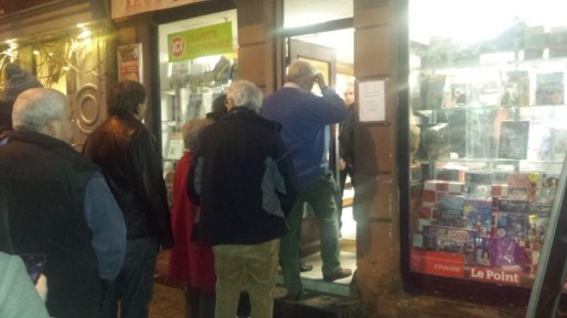 Dès 8h mercredi, la plupart des kiosques de journaux de Strasbourg n’avaient plus de Charlie Hebdo à vendre à leurs clients. Un kiosquier du centre-ville en a reçu 40, une livraison déjà exceptionnelle, ils sont tous été distribués à ceux qui avaient pris la précaution de réserver leur numéro auparavant, comme Colin (voir la vidéo ci-dessous). Plusieurs centaines de personnes se sont inscrits en liste d’attente chez ce même kiosquier, qui attend impatiemment une nouvelle livraison.