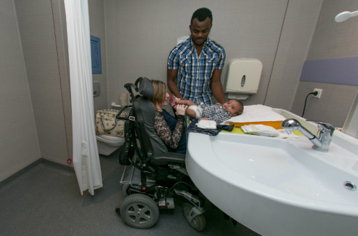 David Sogne se souvient à peine d’une ou deux patientes en dix ans. Si les plateaux techniques d’accouchement, prévus pour des femmes allongées et réglables en hauteur, s’adaptent relativement facilement au handicap, ce n’est pas le cas des chambres : il suffit d’une salle de bain sans chaise de douche pour qu’il soit impossible de s’y laver.