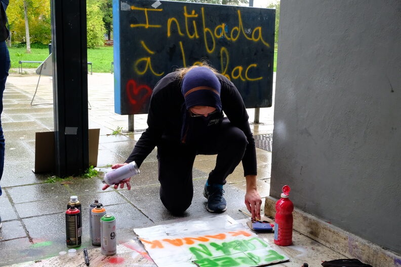 Étudiante en sociologie et membre du comité Palestine Unistras, Sarah rapporte une assemblée générale tenue quelques jours plus tôt. Une trentaine de participants auraient ainsi approuvé à l’unanimité l’action du jour et son objectif, que résume Sarah :