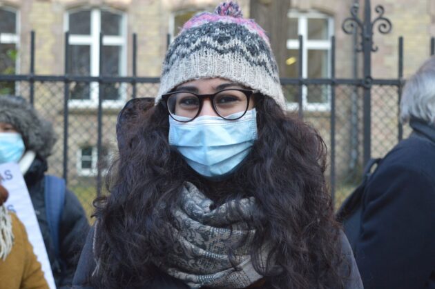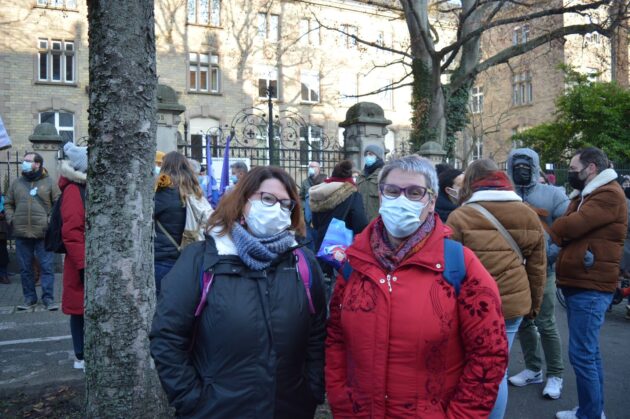 « Je suis épuisée. C’est simple, ça ne peut pas continuer, c’est physiquement impossible », assure Mariam. Elle est assistante d’éducation (surveillante, ou AE), au lycée des Pontonniers. Impossible pour elle de louper la manifestation de ce 13 janvier. Le rassemblement est fixé devant l’inspection académique, avenue de la Forêt noire, par l’ensemble des syndicats de l’Éducation nationale (FSU, SGEN, UNSA, FO, CGT Éduc‘action, SNALC, SNE, SUD). L’objectif : dire stop aux protocoles sanitaires inapplicables et demander des moyens humains et matériels pour la protection de tous les personnels de l’éducation.