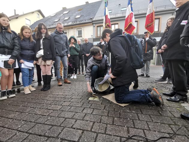 Les élèves ne sont pas juste présents pour l’installation, mais entreprennent auparavant tout un travail de reconstitution des biographies et des évènements. Une façon de s’approprier l’histoire de son pays, de sa région et de sa ville, douloureuse mais nécessaire, selon Cyriak Batlo, enseignant d’histoire et de LCR (Langue et culture régionale) au collège de la Haute-Bruche à Schirmeck.