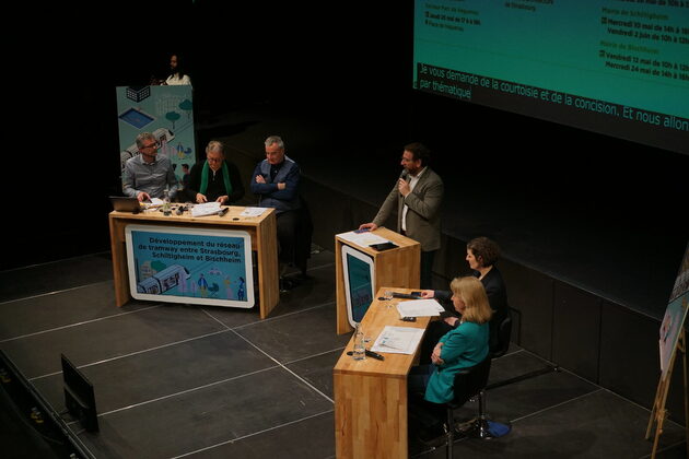 « Il n’y pas de solution ! Donnez-nous des solutions, nom de Dieu !! » Gueulards, les révoltés de la Neustadt s’égosillent sur leurs sièges. Mercredi 29 mars, depuis les tribunes bondées du Palais des fêtes, les huées tombent en cascade contre les représentants de la Ville et de l’Eurométropole de Strasbourg. La maire Jeanne Barseghian (EE-LV) en tête. L’objet de leur courroux : les aménagements sur l’avenue des Vosges qui accompagneront le tramway vers le nord de l’agglomération, parce qu’ils limiteront grandement la circulation des voitures. Face à eux, l’exécutif n’en démord pas et assume d’en finir avec cette artère routière, avec l’appui des partisans du projet. Présents eux aussi en nombre, ils répliquent par des salves d’applaudissements nourries. Avec une synchronisation suspecte.