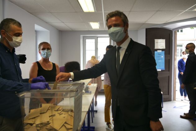 Jean-Philippe Vetter (LR), qui a fusionné sa liste avec celle d’Alain Fontanel (LREM), a voté au lycée Oberlin à la Krutenau en début d’après-midi.
