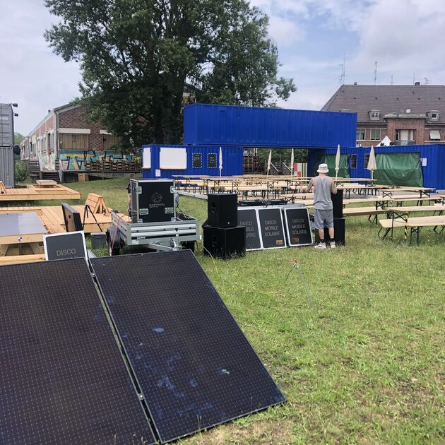 De plus en plus conscient des impératifs écologiques et du catastrophique bilan carbone de n’importe quel événement festif, Philippe Pollaert, aka DJ Phil, programmateur et régisseur, a mis au point un concept de platines mobiles alimentées à l’énergie solaire :
