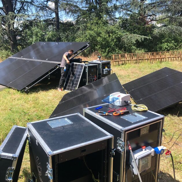 Philippe Pollaert est un peu rêveur. Mais il est déterminé à apporter sa contribution à un effort qui serait partagé par toute la filière. Son système, développé par Mobilvolts à Séranon dans les Alpes-Maritimes avec des panneaux solaires construits par Voltec à Dingsheim-sur-Bruche, est encore expérimental. Il a été testé pendant plus d’un an avec son association, Genau. L’objectif est désormais de proposer des prestations à des événements plus importants, via une entreprise appelée We R Solar, grâce à une version plus puissante du système :