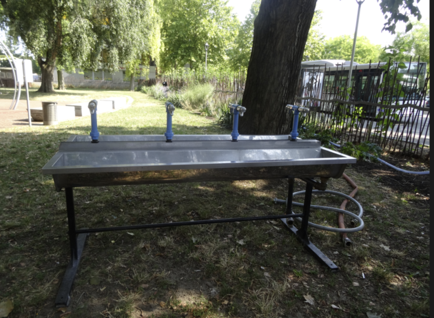 Les demandeurs d’asile installés dans le quartier du Neuhof peuvent au moins se rafraîchir. Dans la matinée du 3 août, la Ville de Strasbourg a mis en place un évier mobile. Mais l’eau qui en coule reste encore non-potable. Dans le campement situé rue des Canonniers, des tests de potabilité doivent être effectués dans la journée du lundi 6 août, assure Annick Neff, adjointe chargée du quartier du Neuhof. Ce dispositif doit permettre de remplacer les distributions d’eau en bouteilles. Mercredi 1er août, les collectifs D’ailleurs nous sommes d’Ici 67 et Rue des canonniers déploraient une aide insuffisante.