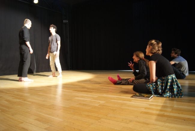 « Par promotion, on est que deux dans cette section, c’est un peu compliqué pour nous parce qu’en première année on observe plus qu’autre chose et quand on arrive en deuxième année on doit diriger des groupes d’acteurs et gérer des projets, il n’y a pas d’entre deux. En première année, on assiste les metteurs en scène qui interviennent dans l’école, on aide aussi ceux de la promotion antérieur dans leurs créations mais on n’a nos propres projets qu’à partir de la seconde année. La vraie question et ce qui est compliqué dans notre section c’est de savoir, de manière plus générale, comment on forme un metteur en scène. »