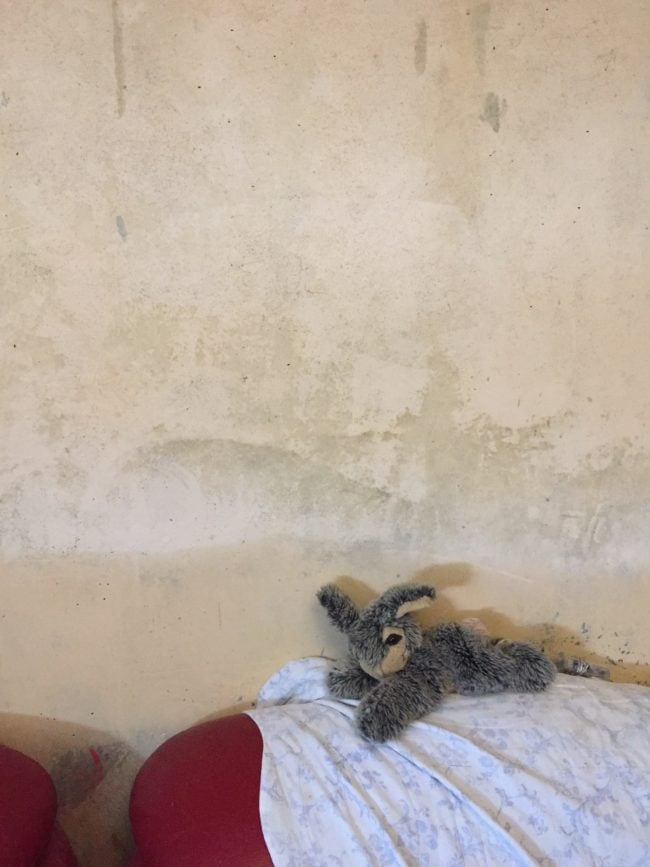 Chez les voisins d’en-dessous, c’est à peine mieux : les murs de la salle de jeu des enfants sont noirs de moisissures. Là encore, le papier peint se décolle. Caroline, la maman, a dû jeter plusieurs meubles, abîmés par l’humidité des murs.