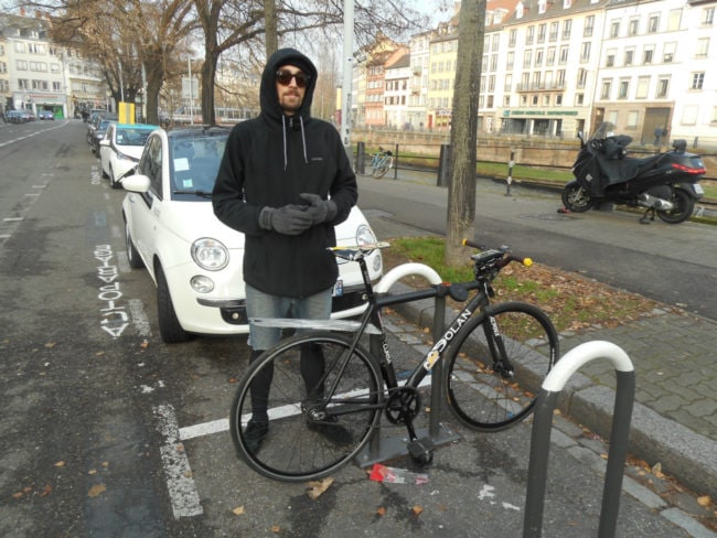 « Faire du sport et être payé pour ça, c’est quand même le kiff ! Tu ne fais qu’un avec le vélo, et rouler vite donne des sensations comme les sports extrêmes. Déambuler dans les rues de Strasbourg, c’est peut-être fatiguant, mais c’est la partie la plus intéressante. Je découvre plein de coins de la ville en plus ! Là ça fait plusieurs semaines que je ne prends pas de week-end, parce qu’il y a une forte demande au mois de décembre, donc je me fais un max. Dans les meilleures journées, quand tu travailles 10h, de 11h30 à 21h30, ça me rapporte entre 130 et 150€. »