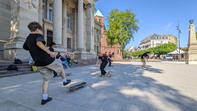 De fait, les équipements adaptés à cette pratique manquent à Strasbourg et dans le département. Un skate park est programmé dans quelques années au parc de la Citadelle mais les jeunes apprécient plutôt les places lisses en ville, où ils peuvent se croiser et échanger… pas forcément des parks certes dédiés à la pratique mais situés dans des zones reculées où personne ne passe. Le skate est certes une activité sportive mais c’est aussi une activité sociale, surtout pour ces jeunes qui ont en majorité entre 15 et 20 ans.