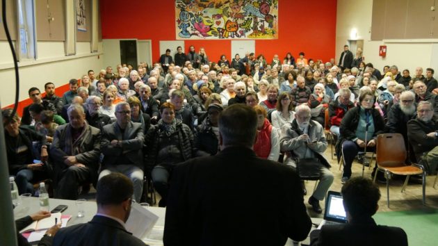 21h30. Mathieu Cahn a décidé de mettre fin aux questions. La salle s’est déjà vidée de moitié. Près de la porte, deux habitants du quartier expriment leur rancoeur. L’un regrette que la question du stationnement et d’un parc pour enfants aient été absentes du débat. L’autre voit un problème plus profond :