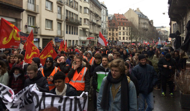 À Strasbourg, les organisations CFDT, CFE/CGC, CFTC, CGT, FAFP, FO, FSU, Unsa, Solidaires, CNT accompagnés des « étudiants en lutte » participeront à la manifestation et appellent les usagers à se joindre à eux. Récemment, les Socialistes bas-rhinois ont précisé qu’ils rejoindraient également la mobilisation.