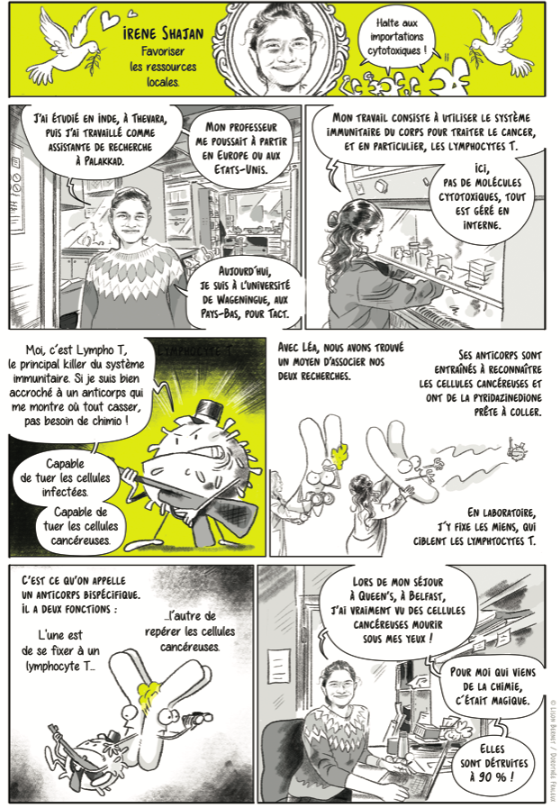 En 2020, il répond à un appel à projets européen avec un programme de recherche sur les ADC (antibody-drug conjugates, conjugués anticorps-médicament), un outil thérapeutique qui permet aux produits chimiothérapiques d’être distribués uniquement dans les cellules cancéreuses. Du 11 au 20 mars, le programme Tact (Targeted anti cancer therapies) présente ses résultats au Palais universitaire avec une exposition composée de trois films d’animation produits par le studio Atelier Limo et d’un roman graphique dont les dessins sont réalisées par l’illustratrice scientifique Lison Bernet. Guilhem Chaubet, tout juste lauréat d’une médaille de bronze du CNRS, revient pour Rue89 Strasbourg sur cette expérience.