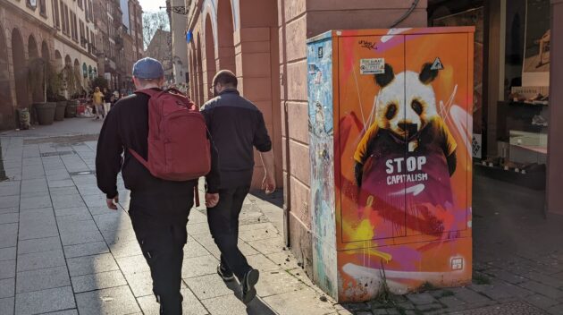 Le jour où il n’y aura plus du tout de graff vandale, on pourra dire que le graffiti s’est dépolitisé. À Strasbourg, il y a encore beaucoup de graffitis aux messages et aux symboles politiques, notamment dans le quartier de la gare. Mais le vandale est aujourd’hui moins présent. Cela peut aussi dépendre d’une année à l’autre, tu peux avoir beaucoup de graffitis une année, tandis que la suivante plus du tout.