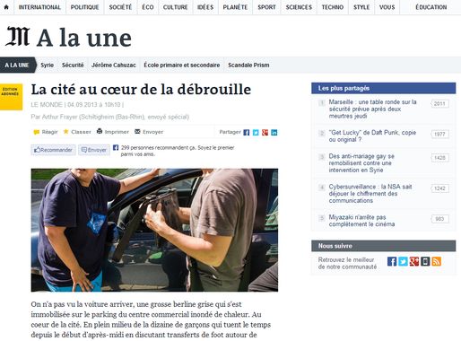 Le Monde est allé voir à la cité des Marais à Schiltigheim comment les habitants font pour aller chez le coiffeur, se commander une pizza ou réparer leur voiture. Dans un long reportage illustré par des photos de Pascal Bastien (qui tient le blog La 89e image sur Rue89 Strasbourg), le journaliste Arthur Frayer décrit cette économie du « Schwartz », où les services s’échangent ou s’achètent à petits prix et très loin des taxes. Pour ceux qui vivent au RSA (410 € par mois), ces petites combines permettent de se créer « un smic à moitié légal » comme ils disent :