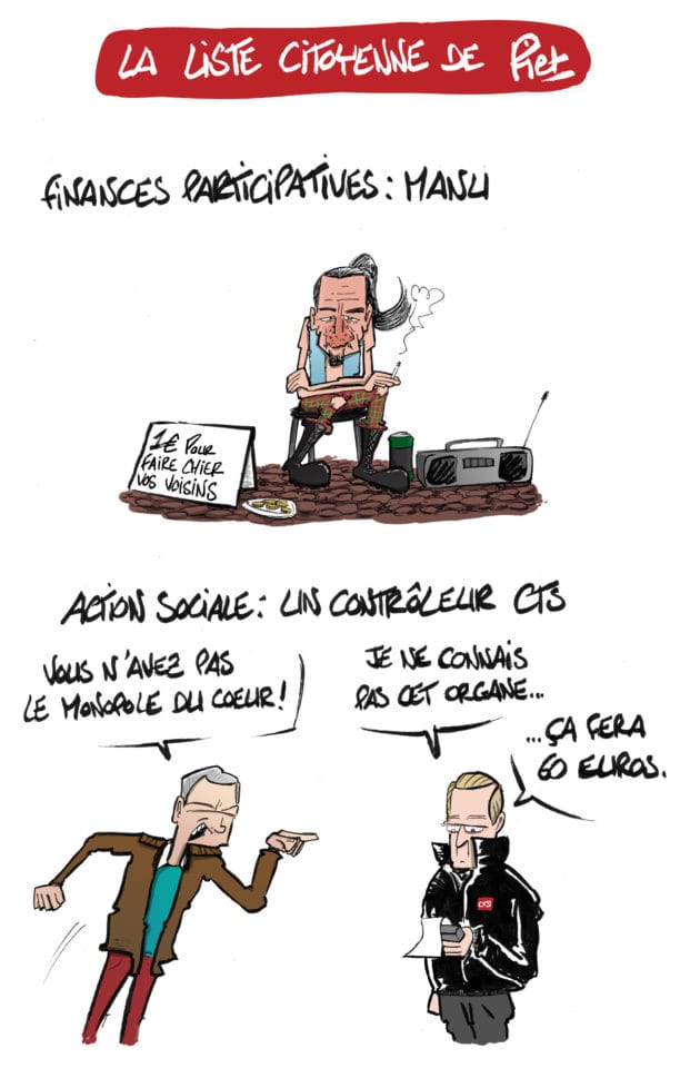 Citoyen par-ci, citoyen par-là… On tient le mot de ces municipales pour Strasbourg. Après la liste écologiste et citoyenne emmenée par Jeanne Barseghian, Chantal Cutajar a annoncé elle aussi sa liste… Citoyenne, forcément. De quoi inspirer notre dessinateur, qui a décidé lui aussi de composer sa dream team pour le Conseil municipal.
