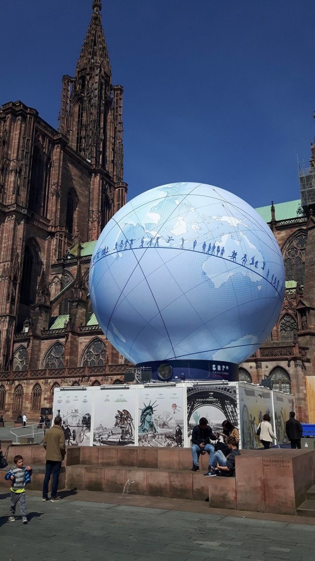 Qu’est-ce que cette sphère entre la cathédrale et le château des Rohan à Strasbourg ? C’est le signe du soutien de Strasbourg pour la candidature de la France pour accueillir l’Exposition universelle en… 2025. En attendant, une exposition parcourt 16 grandes villes de France, et fait étape à Strasbourg jusqu’au 8 mai.