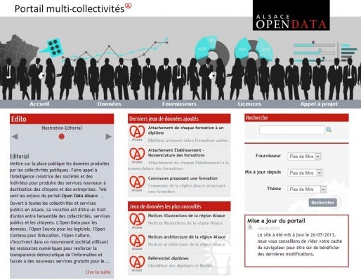 Bon, ne boudons pas notre plaisir. Il est réconfortant et rassurant de constater que les collectivités locales proéminentes débutent leurs démarches Open Data, qui les conduira nécessairement vers plus de transparence. La Région Alsace a choisi de publier les données ayant trait à l’éducation, au budget et à la culture (avec l’inventaire de la Neustadt notamment).