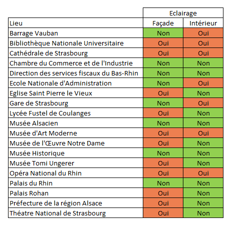 C’est une étude du cabinet B&L évolution, spécialisé dans le développement durable, qui met en lumière (c’était facile) cette réalité : seuls 5 bâtiments publics gérés par la CUS sur 19 étudiés du 8 au 12 janvier 2014 respectent l’ensemble des dispositions de l’arrêté de juillet. Quant aux vitrines des commerces de la Ville, les taux d’éclairages après 1h du matin dépassent les 40% dans les rues des Hallebardes et du Dôme.