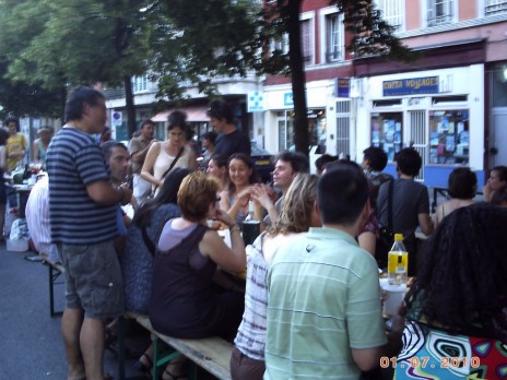 Chacun apporte ses spécialités culinaires: ses chips, sa tarte aux poireaux, son fondant au chocolat, son incontournable salade de nouilles… et on partage avec ses voisins ! L’ Association des Habitants du Quartier Gare (AHQG) offre l’apéro et met à disposition bancs et tables pour bien profiter de ces délicieux mets. Il faut apporter son assiette et ses couverts.