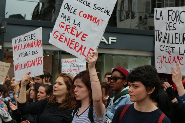 « Même si le mouvement est d’inspiration soixante-huitarde, nous voulons surtout montrer la possibilité d’un mouvement social global. Nous occupons le Palais universitaire depuis lundi et nous organisons des tables-rondes, des assemblées générales, des projections de films… Au plus fort de la manifestation, près de 300 personnes étaient présentes pour participer aux débats. Nous ne voulons pas de mesures de droite et antisociales. Macron cherche à rentabiliser le service public, qui n’a pas à l’être. »
