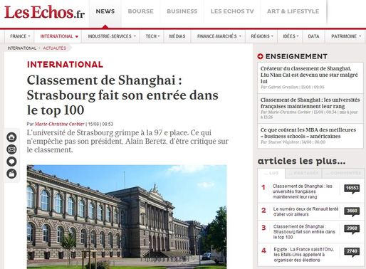 Sur Rue89 Strasbourg : L’Université de Strasbourg ignore le classement de Shangaï