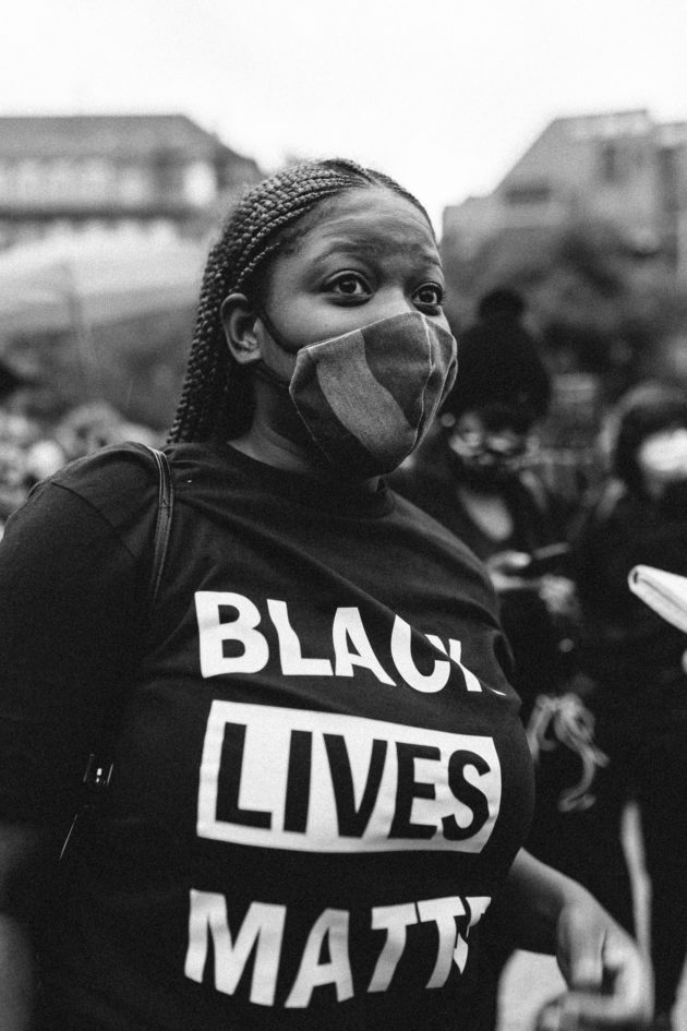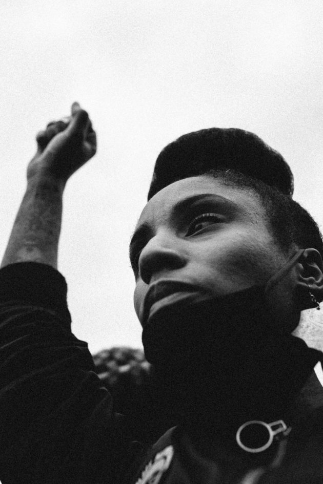 Estel, 25 ans, participe à sa première manifestation. Confrontée depuis toute petite à des remarques liées à sa couleur de peau, cette animatrice pour enfants vient aussi dénoncer les violences policières, d’Adama Traoré en France à George Floyd aux États-unis : « On ne veut pas mourir à cause de la police », explique-t-elle.