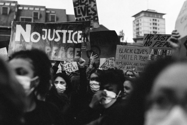 Le rassemblement est ponctué de discours, malheureusement peu audibles et de moments de silence en hommage aux victimes des bavures policières, dont les noms ont été égrenés par les organisateurs. Les genoux à terre, les poings levés et les pancartes « No justice, no peace » font référence à la mobilisation américaine depuis la mort de George Floyd à Minneapolis. Quatre policiers ont été inculpés pour meurtre et non assistance après une semaine de manifestations dans de nombreuses villes des États-Unis.